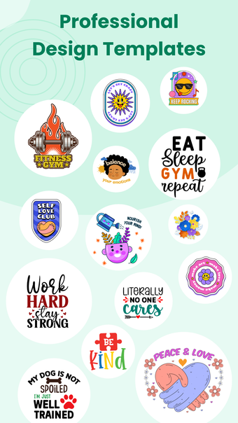 يقدم التطبيق مجموعة من الميزات لتعزيز عملية التصميم الخاصة بك. تتوفر قوالب جاهزة لمواضيع ومناسبات مختلفة ، بما في ذلك التيشيرتات والأكواب وديكور المنزل. تسمح لك مجموعة التحرير الكاملة بضبط الألوان والخطوط والتخطيطات بدقة ، مما يضمن أن تحفتك النهائية تتوافق مع رؤيتك. قم بتخصيص تصميماتك بشكل أعمق باستخدام الأحرف الأولية والنص والاقتباسات الملهمة باستخدام مكتبة الخطوط المتنوعة.